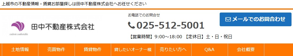 事業内容:上越市にある田中不動産株式会社は、再建築不可物件をはじめとする様々な不動産の相談に対応しています。他社で断られた物件でも丁寧に話を聞いてくれる姿勢が強みで、権利関係が複雑な不動産のお悩みにも寄り添います。お客様の不安を解消するために尽力し、解決策を提案します。