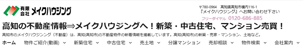事業内容: 高知市横内にある有限会社メイクハウジングは、地域密着ならではの機動力と情報力を持つ不動産会社です。単に物件を売買するだけでなく、顧客の人生設計や悩みに寄り添うことを大切にしています。再建築不可物件のような扱いが難しい不動産についても、「どうにかしたい」という所有者の思いを汲み取り、解決に向けた相談に積極的に応じています。