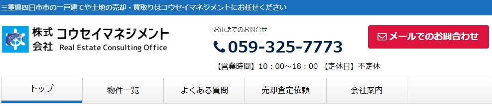 事業内容:四日市市の稲葉町に所在地を置く株式会社コウセイマネジメントは、難易度の高い不動産案件にも積極的に取り組む姿勢を持つ不動産会社です。 権利関係が複雑に入り組んだ物件や、法律上の制限で建て替えができない土地など、一般的には敬遠されがちな物件についても、解決に向けた相談を幅広く受け付けています。
