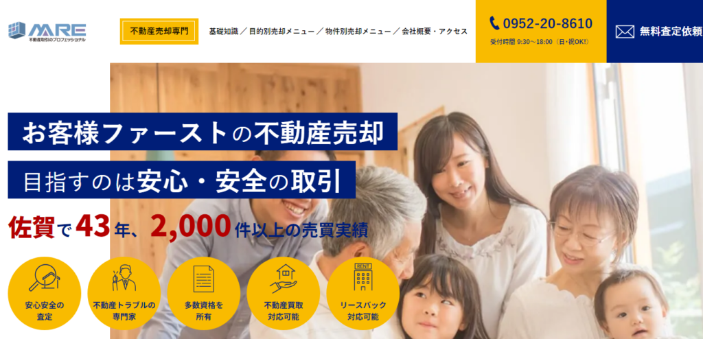 佐賀市松原4丁目に本社を構える地域密着型の不動産会社で、戸建て、マンション、土地、空き家などの不動産売却を専門としています。